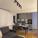 A Luxury Prime Apartments With Parking magába foglal erkélyt, nappalit és konyhát klímaberendezéssel a maximális kényelem érdekében.